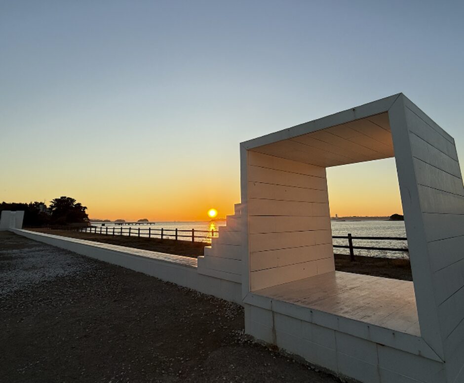 朝の島を散歩すれば、朝日に照らされるアート作品が違った表情を見せてくれます。海からの風を感じながらの散歩は、最高のインスピレーション源です。