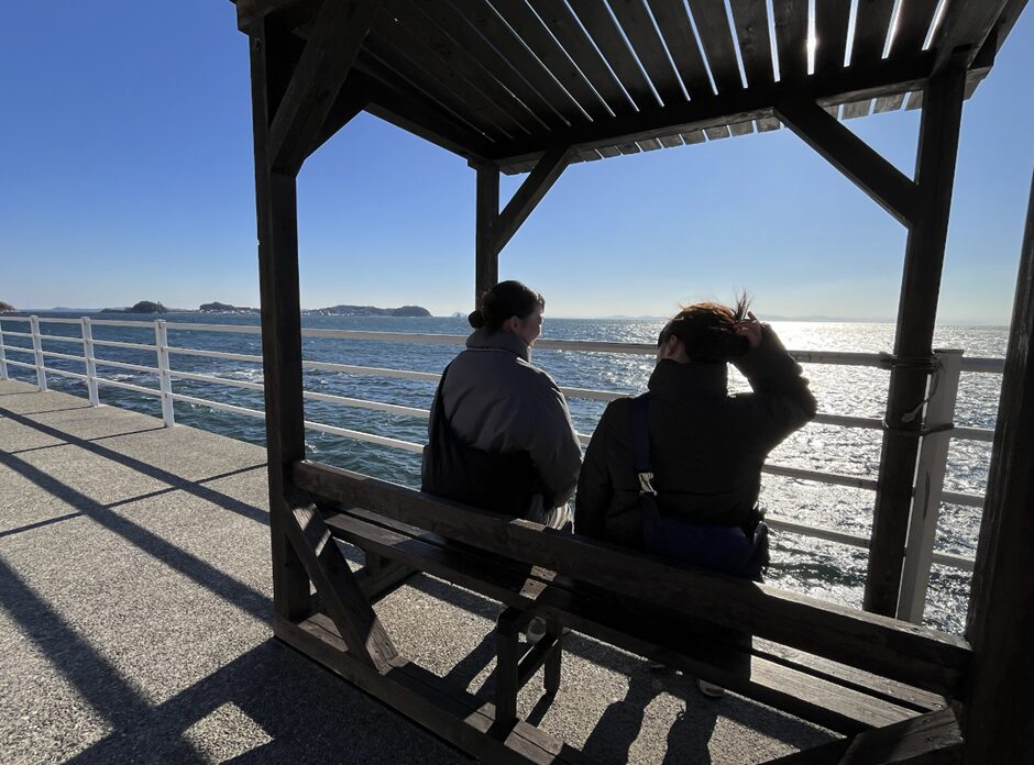 午前中に東京を出発し、名古屋駅で乗り換えて西尾駅へ。西尾駅からはバスに乗り換え、30分ほどかけて一色港まで向かいます。一色港からは高速船で約30分、佐久島に到着します。