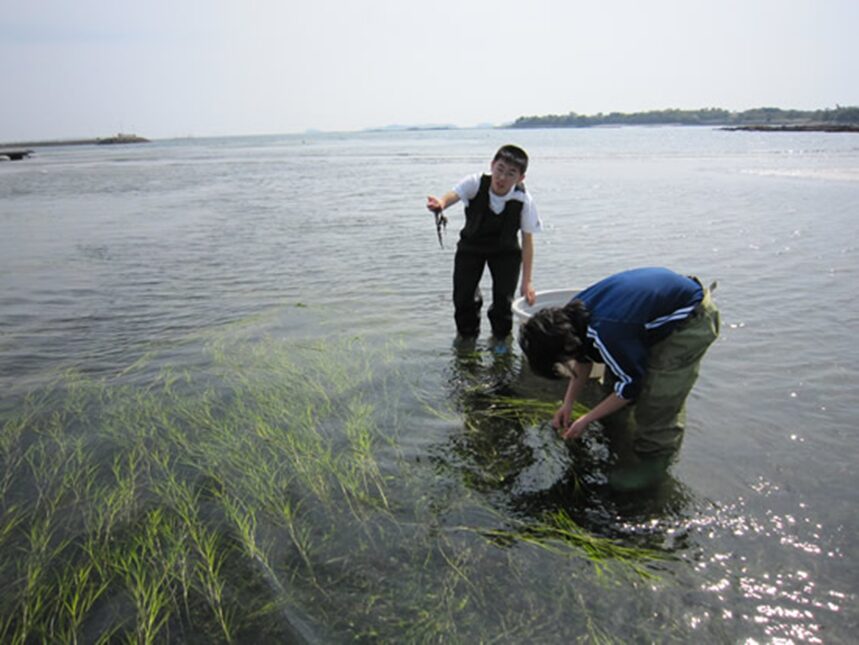 島を美しくつくる会では、ボランティアの受け入れやアマモ(海草)の移植など、島がより良くなるための活動を幅広く行っています。